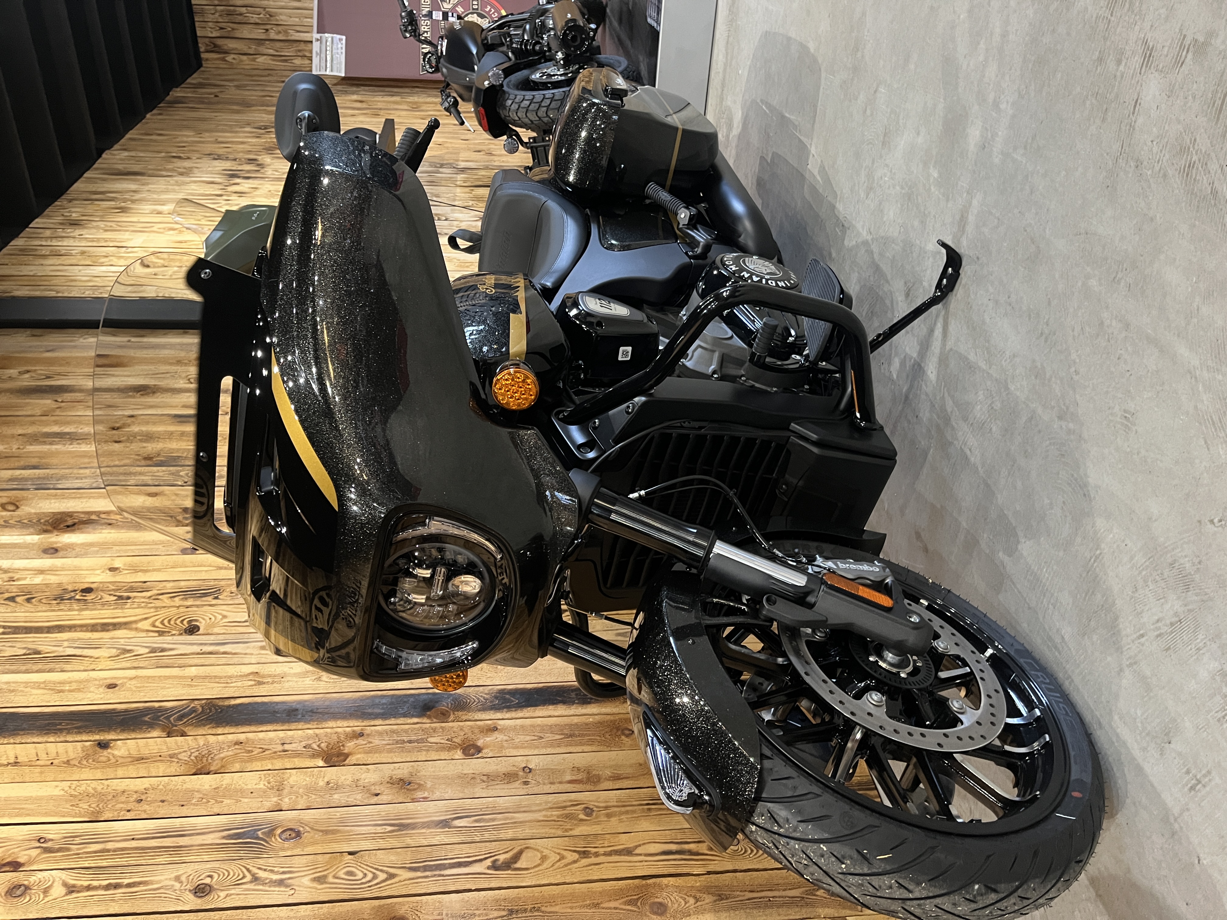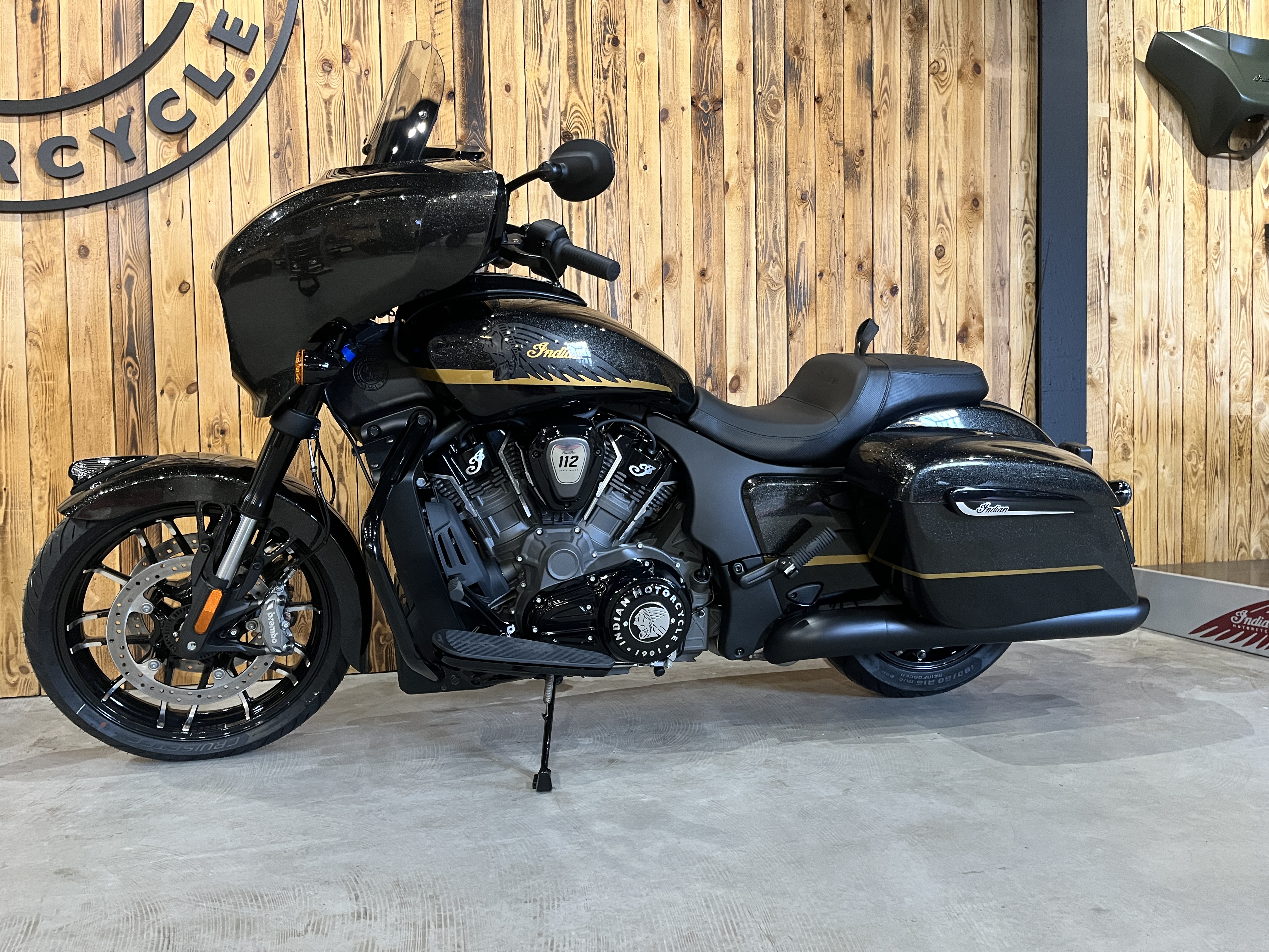 De Indian Chieftain Powerplus Dark Horse with 112 Package is een high-end bagger-motorfiets ontworpen voor krachtige prestaties en lange afstandsritten, met moderne technologie en premium comfort. Het is een variant van de Chieftain-serie met de geüpdatete PowerPlus 112-motor gecombineerd met het geavanceerde 112 Package rijassistentiepakket.