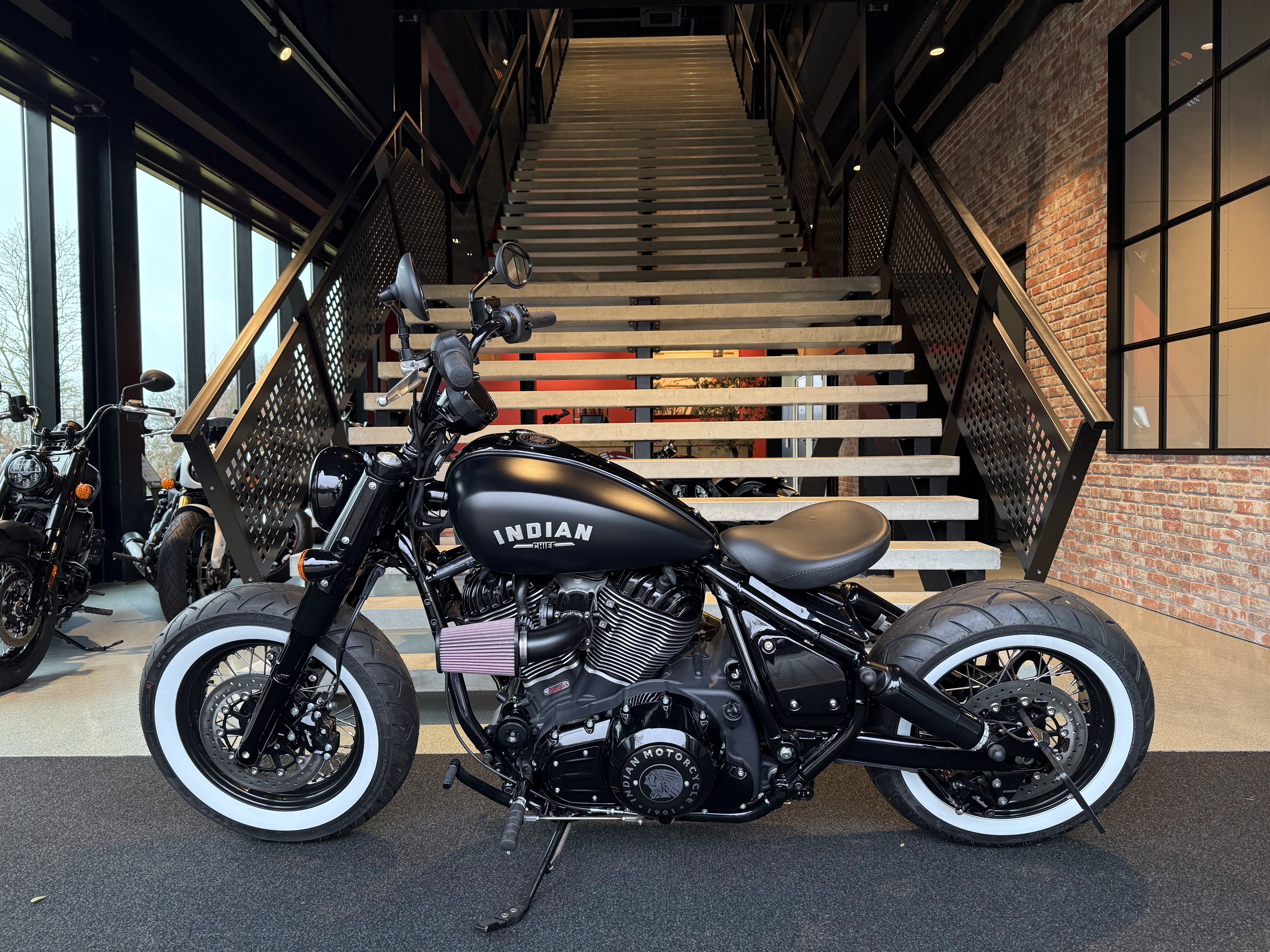 Onze kijk op hoe een Bobber er óók uit kan zien. Whitewall banden, eigen ontwerp luchtfilter, andere zij-kentekenplaathouder, verwijderde fenders en als klap op de vuurpijl nu nog open pijpen (hoe het defintief moet worden bespreken we graag met jou).